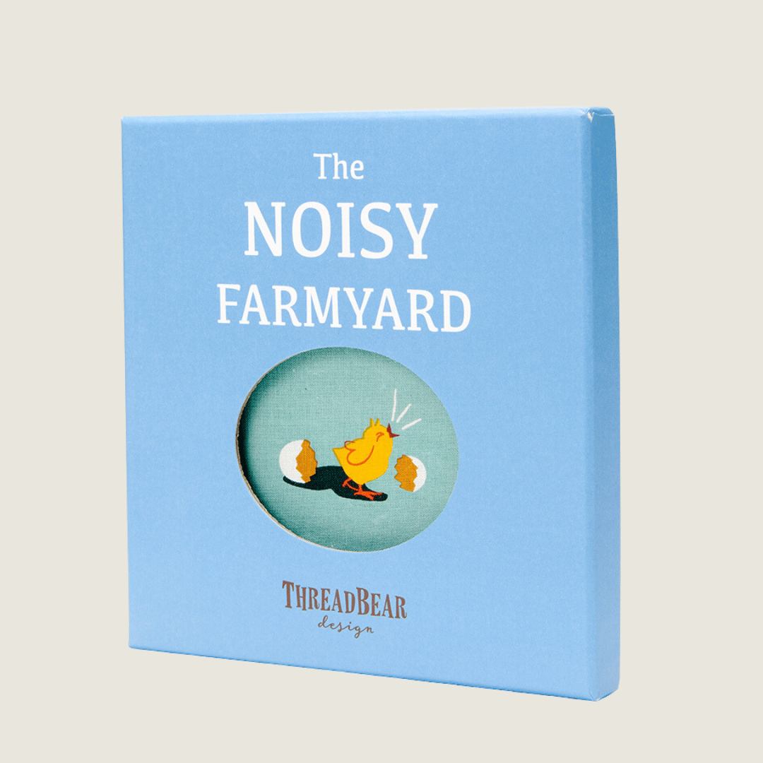 A fabric farm themed ragbook designed for babies by ThreadBear. Filled with colourful 12 different farmyard animals and illustrated sounds. Even the bees in the box are buzzing!